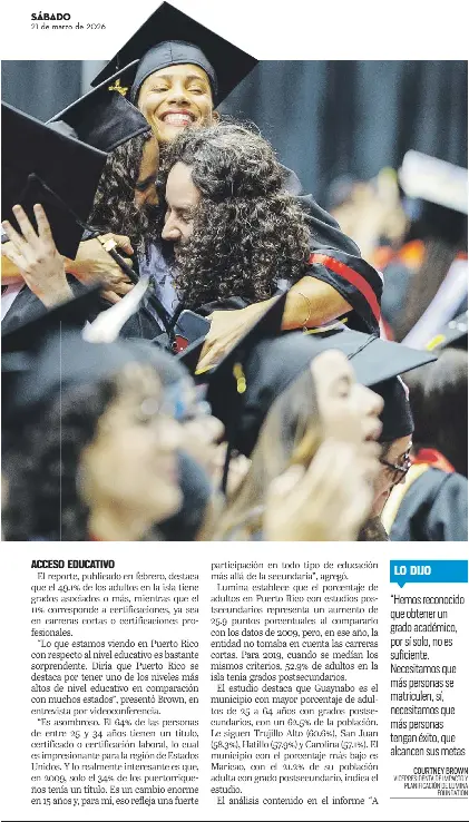 “Lo que estamos viendo en Puerto Rico con respecto al nivel educativo es bastante sorprendente. Diría que Puerto Rico se destaca por tener uno de los niveles más altos de nivel educativo en comparación con muchos estados”, presentó Brown, en entrevista por videoconferencia.