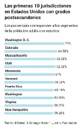 Puerto Rico es la séptima jurisdicción estadounidense con el mayor porcentaje de adultos entre los 25 y 64 años con grados de estudios postsecundarios, con el 60.1% de esta población que completó una credencial más allá del diploma de escuela superior, según un estudio de la organización Lumina Foundation.