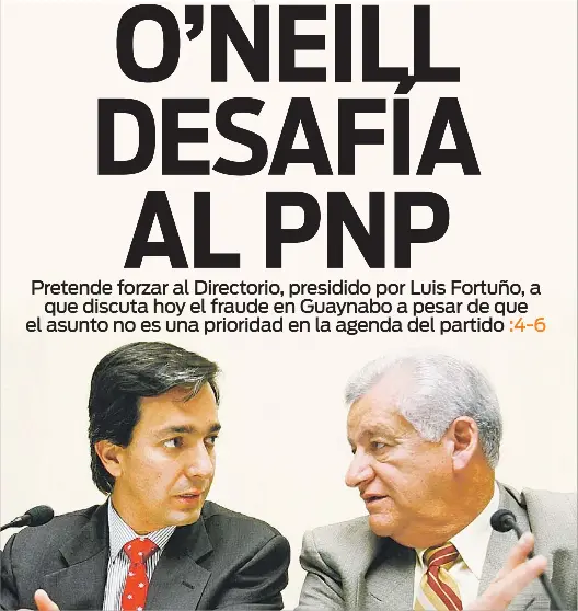 Esta movida sorpresiva de O’neill lo ubica en una posición de enfrentamiento con el presidente del PNP, Luis Fortuño, quien sostiene que este asunto tiene que ser dilucidado en la Comisión Estatal de Elecciones (CEE).