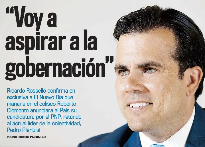 Ricardo Rosselló confirma en exclusiva a El Nuevo Día que mañana en el coliseo Roberto Clemente anunciará al País su candidatura por el PNP, retando al actual líder de la colectividad, Pedro Pierluisi