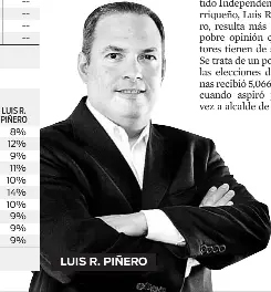 Sobre el candidato del Partido Independentista Puertorriqueño, Luis Roberto Piñero, resulta más dramática la pobre opinión que los electores tienen de su potencial. Se trata de un político que en las elecciones de 2008 apenas recibió 5,066 (2.7%) votos cuando aspiró por primera vez a alcalde de la capital.