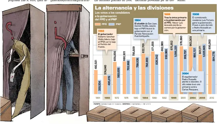 reunificación es un tanto limitada. Por eso, el PPD, suele evitar primarias, especialmente en lo que respecta a la candidatura por la gobernación, opinó Rivera. De este modo, elimina las controversias propias de una contienda que puedan ahondar las diferencias entre los sectores del partido. Sin embargo, no siempre fue así.
