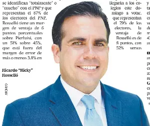 Ricardo Rosselló obtiene el 49% de las preferencias versus un 46% que favorecería a Pedro Pierluisi con su voto Pierluisi gana entre los votos de la periferia del partido y Rosselló mantiene liderazgo en el corazón del rollo del PNP
