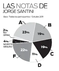 El 42% de los electores de todo el País entiende que Santini, quien se encuentra en su décimo año como alcalde de la capital, es merecedor de A (23%) o B (19%). Mientras, un 33% le dio notas de D (11%) o F (22%).