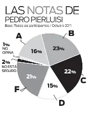 El 39% de los entrevistados dijo que Pierluisi merece notas de A (16%) o B (23%), mientras que un 36% no respaldó su desempeño al darle notas de D (15%) o F (21%).