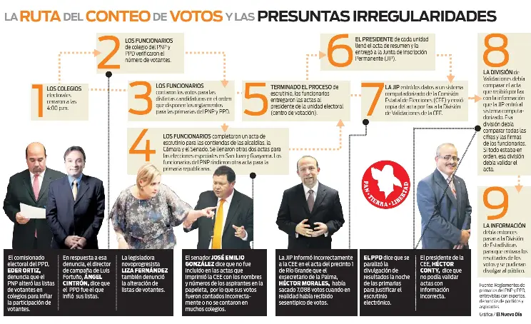 Mientras, el comisionado electoral del Partido Popular Democrático (PPD), Eder Ortiz, agregó que a más tardar hoy solicitará formalmente a la CEE que se recuenten todos los votos en el PNP, al sostener que se aumentó artificialmente la participación en violación de ley.